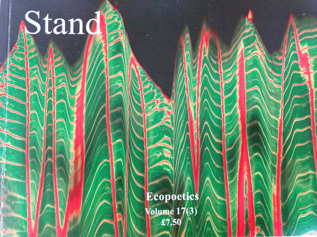 I also had a review in the Ecopoetics Issue of Stand Magazine, edited by the wonderful Vahni Capildeo. The issue includes many brilliant poems and stories, including new work by Pascale Petit and Jason Allen-Paisant. The call is for overwriting, unmaking, resistance and disruption. And there’s also this beautiful cover by Andre Baggoo: