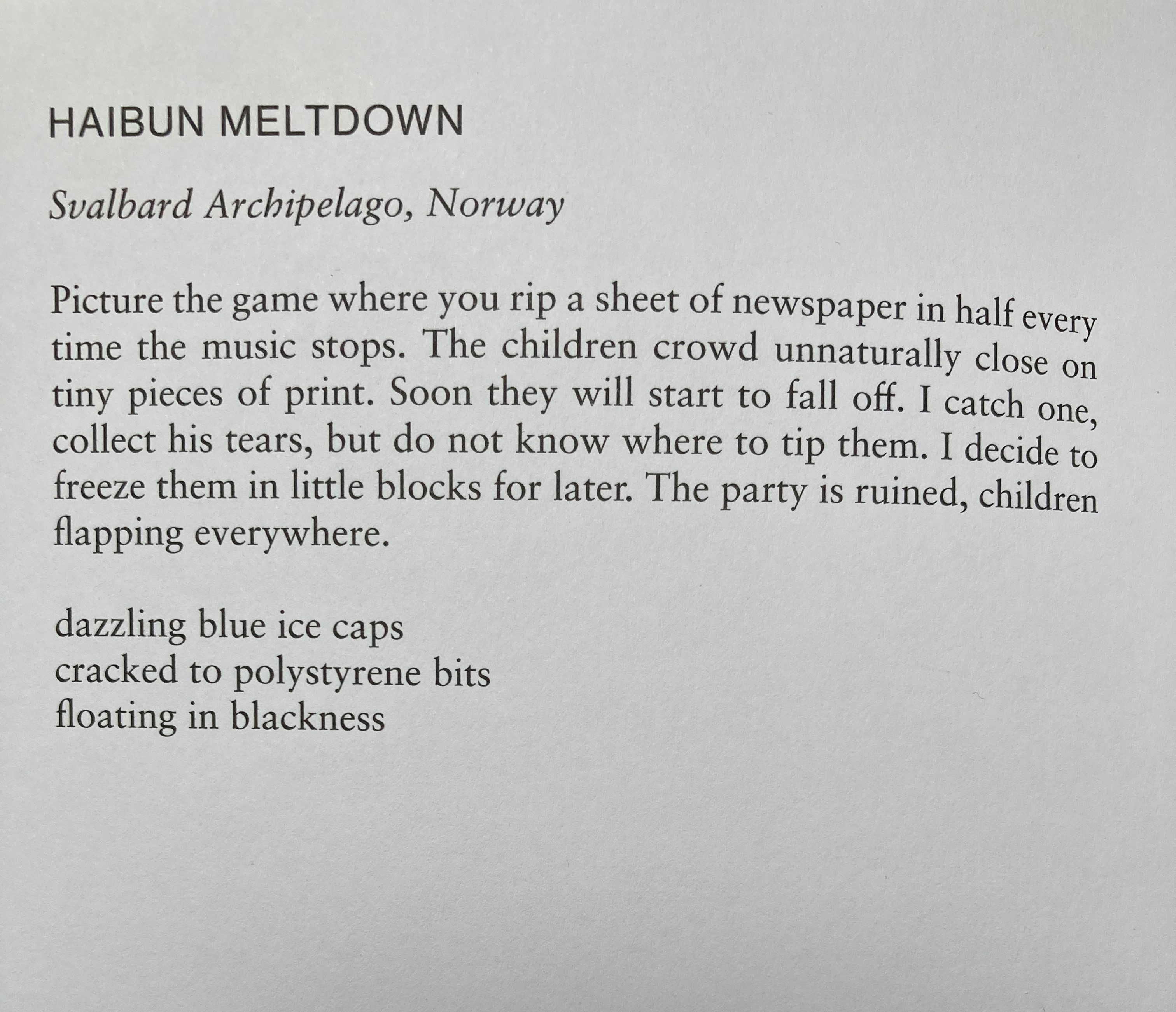 Rachel Bower, ‘Haibun Meltdown’, in the Climate Issue of The Mechanics Institute Review